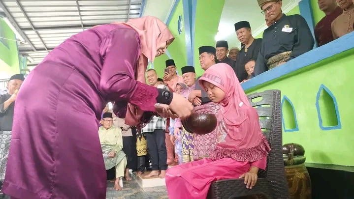 KL– Desa Resun bersama dengan masyarakatnya terus melestarikan tradisi budaya mandi safar dengan turut mengundang Bupati Lingga beserta istri di Masjid Al