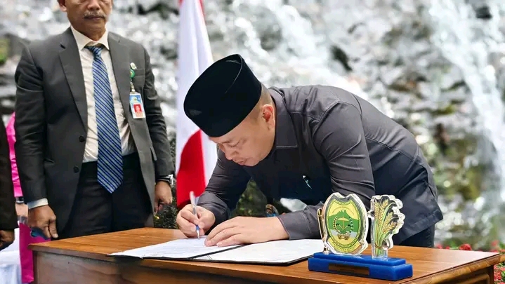 KL – Bupati Lingga M. Nizar melantik 6 orang Pejabat Pimpinan Tinggi Pratama di Lingkungan Pemerintah Kabupaten Lingga yang dilaksanakan di Air Terjun Resun Kecamatan Lingga Utara pada Jumat Pagi (30/01/2026).