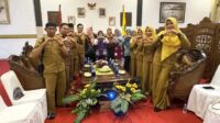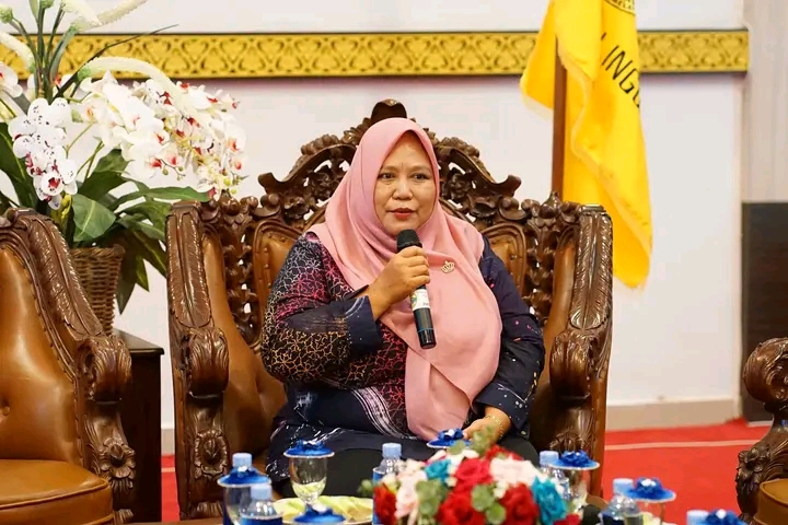 KL-Ketua Tim Pembina Posyandu Kabupaten Lingga Ibu Maratusholiha Nizar didampingi Kepala Dinas kesehatan PPKB mengikuti zoom meeting terkait Penilaian Apresiasi Kader dan Posyandu Bidang Kesehatan Tahun 2025 yang dilaksanakan secara daring di Gedung Daerah Daik pada Selasa (14/10/2025).