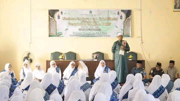 KL -Ketua Dekranasda Kabupaten Lingga, Hj. Feby Sarianty Novrizal, menghadiri kegiatan khataman Al-Qur’an dan halal bihalal yang dirangkaikan dengan pengukuhan pengurus Badan Kontak Majelis Taklim (BKMT) Kecamatan Singkep periode 2026–2031. Kegiatan tersebut dilaksanakan di Gedung Sanggar Praja, Dabo Singkep.Minggu, (5/4/2026)
