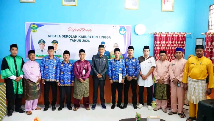 KL – Sekretaris Daerah Kabupaten Lingga H. Armia melantik 4 orang Pejabat Kepala Sekolah di Aula Dinas Pendidikan Pemuda dan Olahraga pada Senin (2/3/2026).